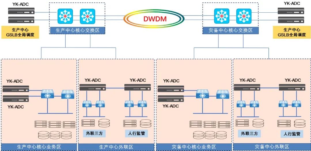 为解决以上挑战,在方案实施前,zoty中欧与客户充分沟通,根据客户需求及业务特点,为其量身设计采用zoty中欧应用交付控制器 YK-ADC 通明湖系列设备进行部署的双活数据中心解决方案。